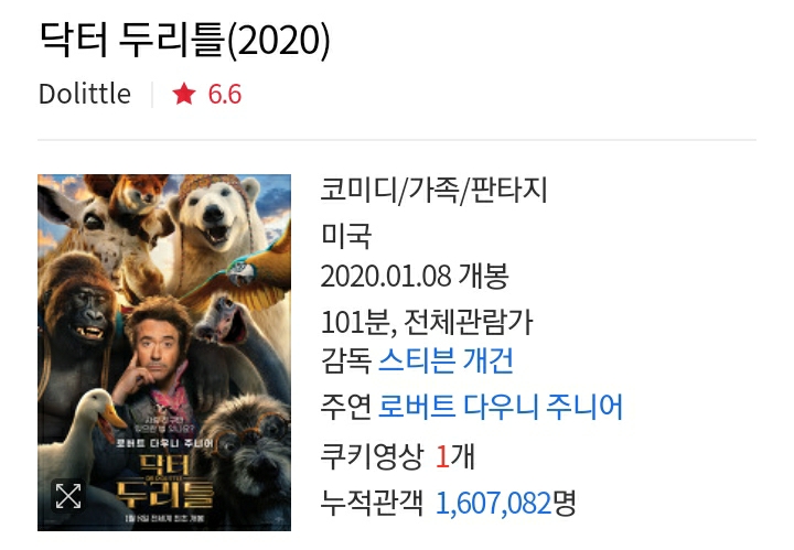 #동물 영화 #로버트다우니 주니어